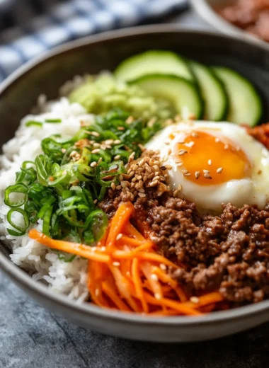 0 commentsKorean Ground Beef Bowl is a delightful dish that’s both satisfying and bursting with flavor. This bowl features succulent ground beef, which is marinated with a blend of savory and sweet Korean seasonings. The result is a meal that delights your taste buds while being incredibly easy to prepare. With […]