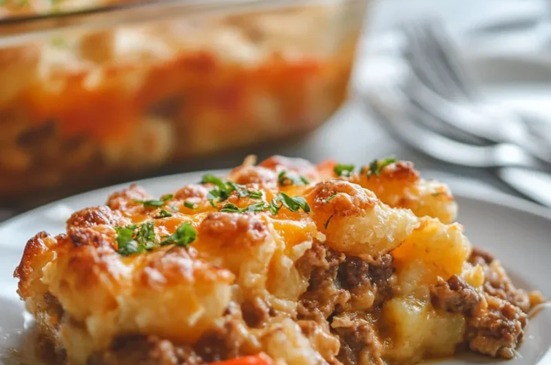 Cheeseburger Tater Tot Casserole is the perfect hearty meal that brings comfort food to a new height. It’s an easy, mouthwatering dish that combines familiar flavors with a fun twist, making it ideal for any occasion. Whether it’s a family weeknight dinner or a potluck gathering, this casserole has all the elements to satisfy any appetite. With its versatility and deliciousness, it’s bound to become a household favorite. Give it a try and enjoy the joy it brings to your table!