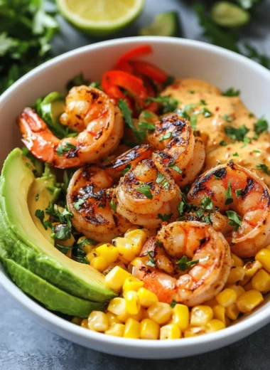 Dinner Grilled Shrimp Bowl with Avocado, Corn Salsa & Creamy Garlic Sauce: An Incredible Ultimate Recipe