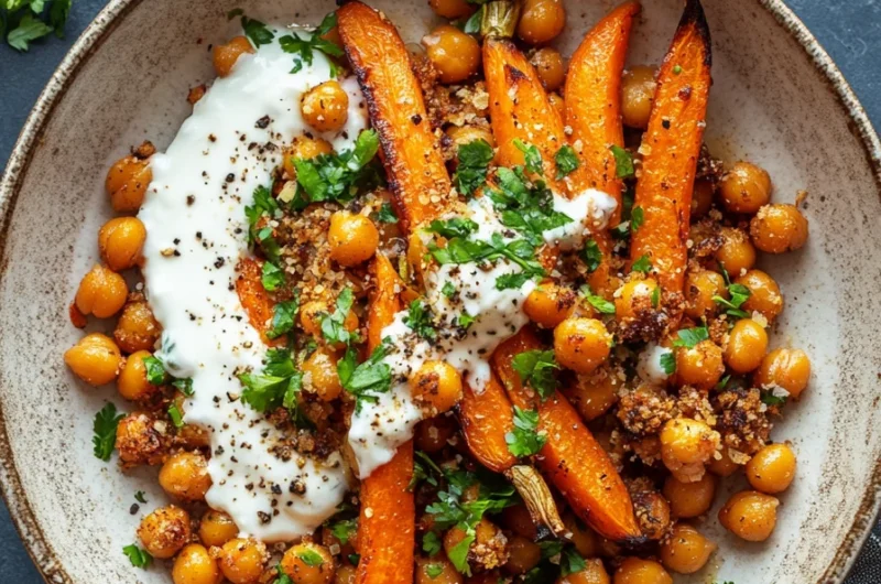 Spicy Maple Roast Carrots with Crispy Chickpeas and Yogurt Sauce is a delightful dish that perfectly combines flavors and textures. This vibrant recipe is not only visually stunning but also packed with nutritional benefits. The simple step-by-step process and potential for variations make it an excellent choice for any meal. Whether you’re preparing a quick weeknight dinner or impressing guests at a gathering, this dish will surely leave everyone satisfied and asking for more.
